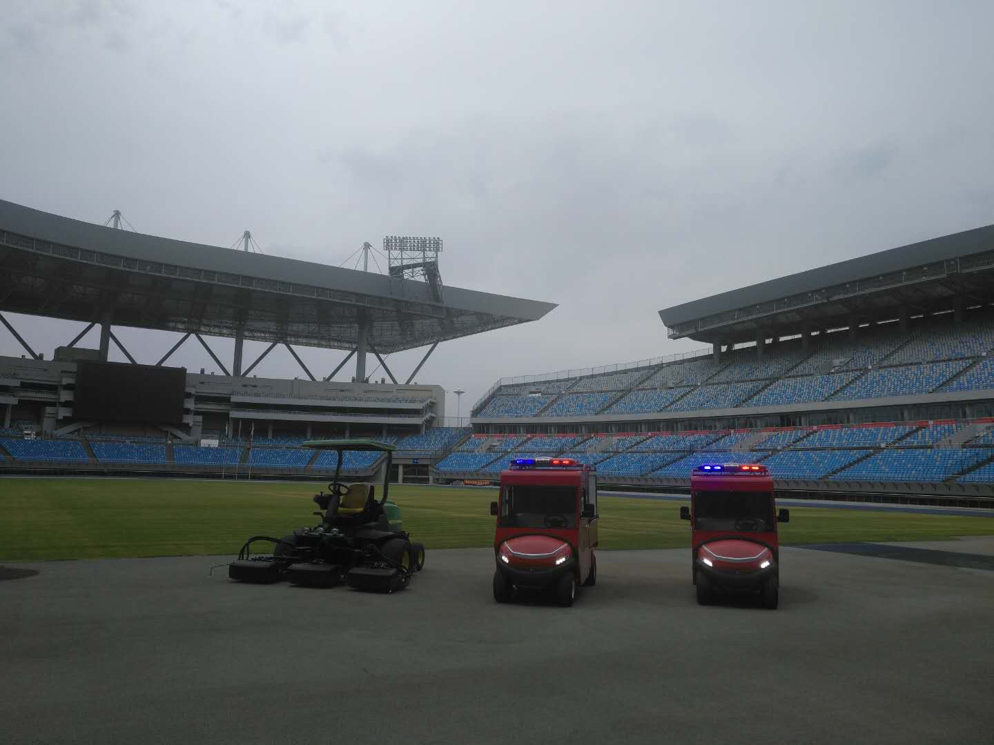2018年7月在河北石家莊奧體中心交付2臺(tái)綠友研發(fā)生產(chǎn)的純電動(dòng)消防車。