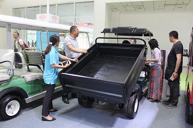 展會上,電動車展位人氣滿滿,吸引了眾多參觀者的目光,不少參觀者現場訂購了我們的電動觀光車。