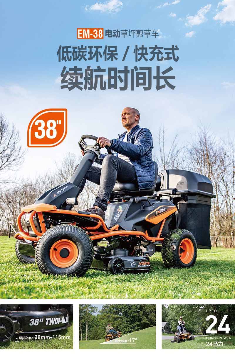 EM38一款低碳環保的電動草坪修剪車,滿足公園綠地日常草坪的修剪要求。