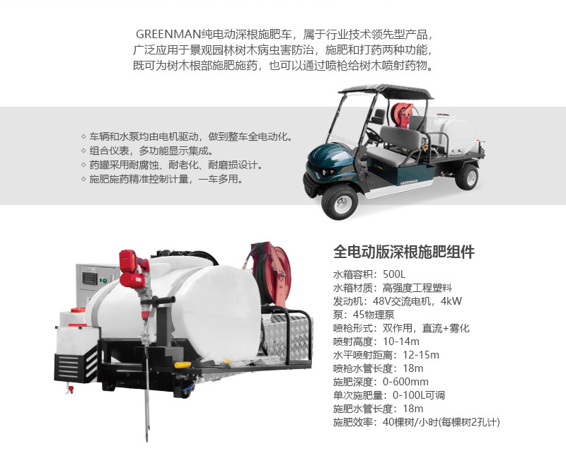 多功能深根施肥機(jī),既可用于灌木,苗圃,行道樹的樹上害蟲防治,又可用于樹木根部的施肥,病蟲害防治等,實現(xiàn)了樹木病蟲害的全方面綜合防治。
