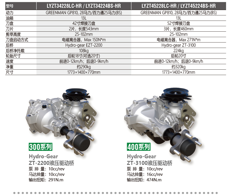 · 選用美國Hydro-gear EZT 液壓驅動系統,