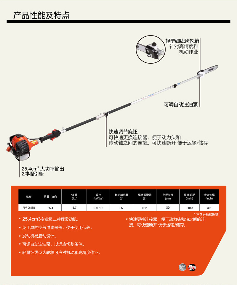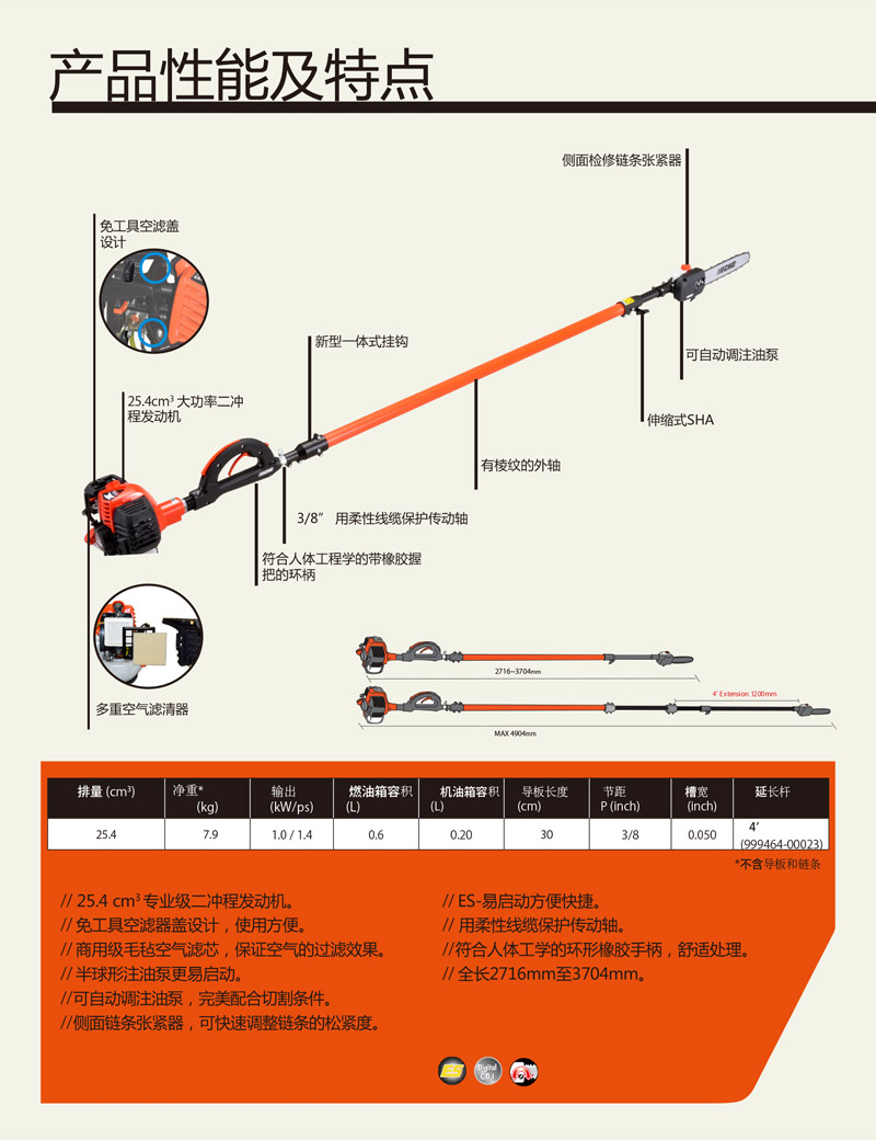高枝油鋸廣泛應用于森林采伐、造材、以及鐵路枕木鋸截等作業。愛可的高枝鋸易啟動,動力強勁而穩定,讓您在修剪濃密的高枝時輕松自如。